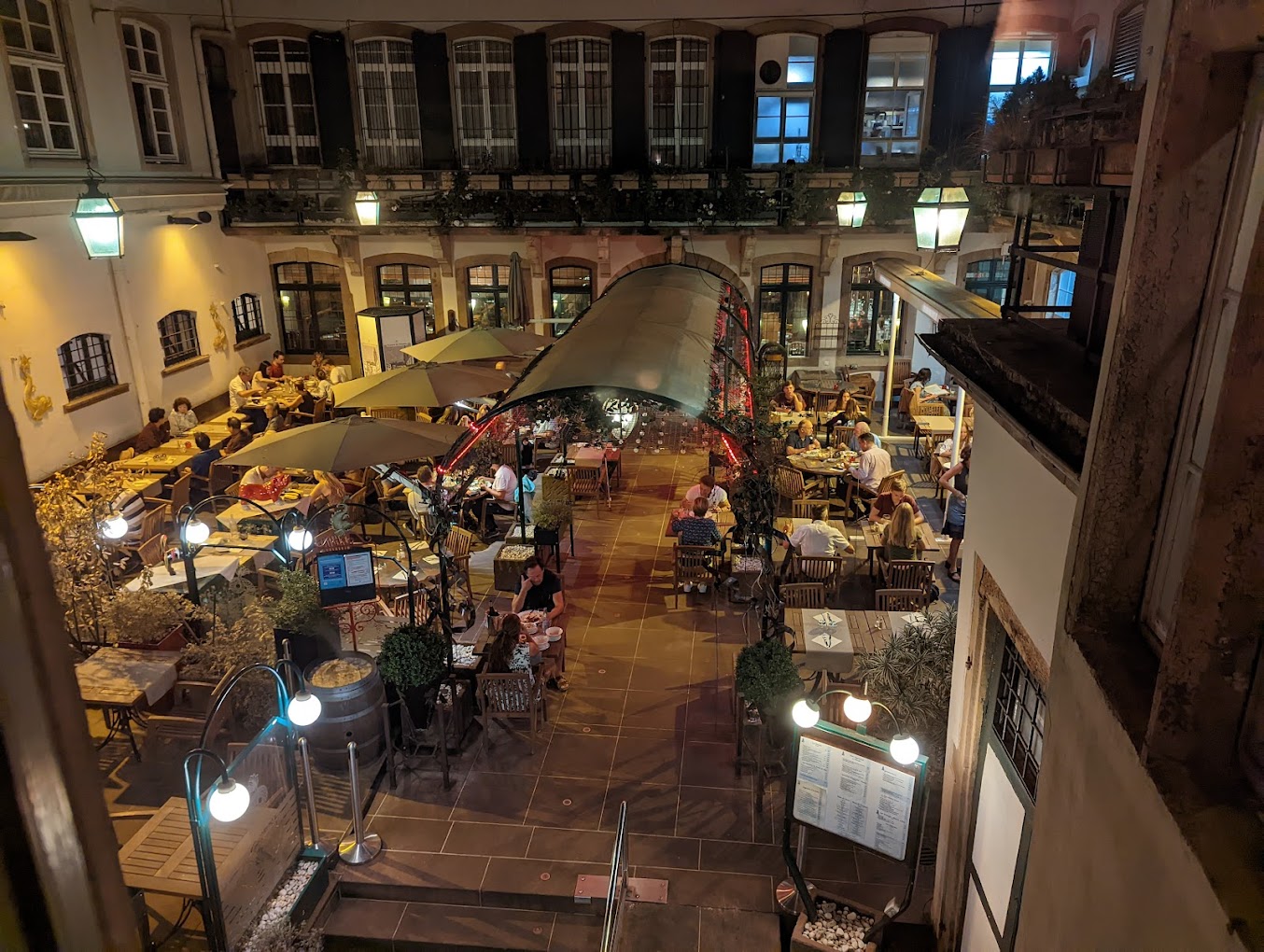 Guests can enjoy a continental buffet breakfast featuring fresh pastries, hot drinks, and regional products. The breakfast room’s view of the cathedral makes it a memorable way to start the day in Strasbourg.